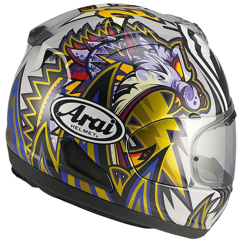 Il leggendario marchio Arai vi presenta il suo casco integrale in fibra omologato, l' RX-7V Evo Nakasuga.
