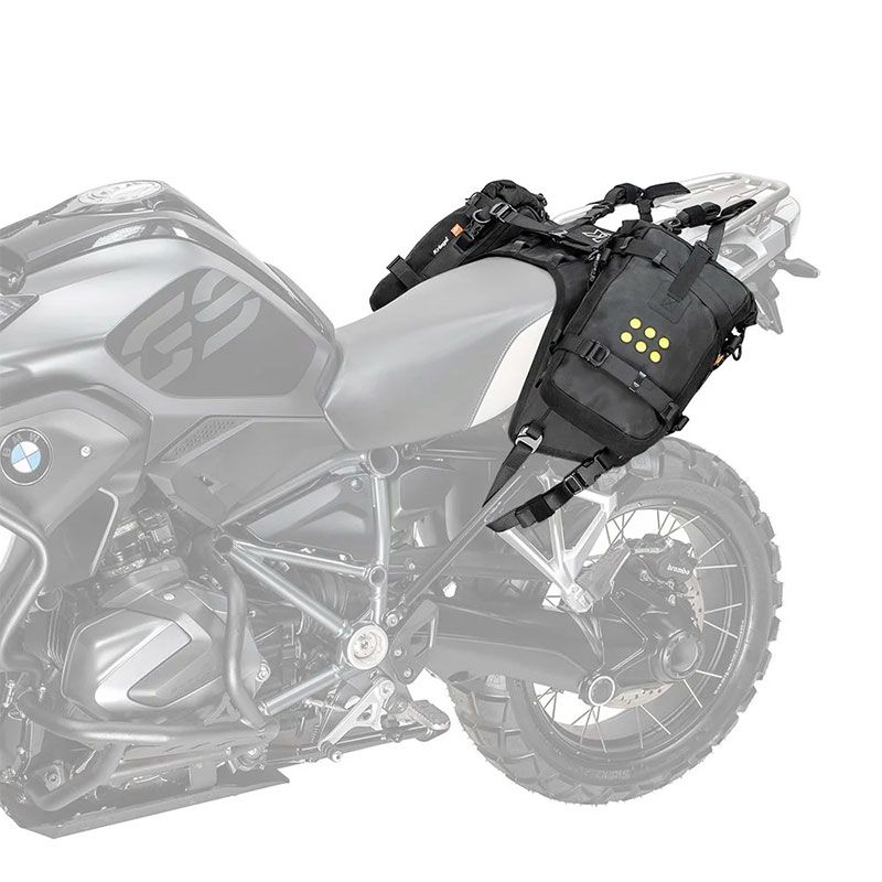 Rackless significa proprio questo: questa imbracatura leggera è tutto ciò che serve per montare in modo sicuro i Kriega OS-ADVENTURE PACKS sulla vostra moto.