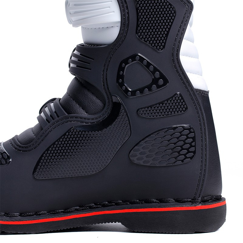 - A parte em contacto com o mota é feita de PU no tornozelo, calcanhar e selector para protecção superior.