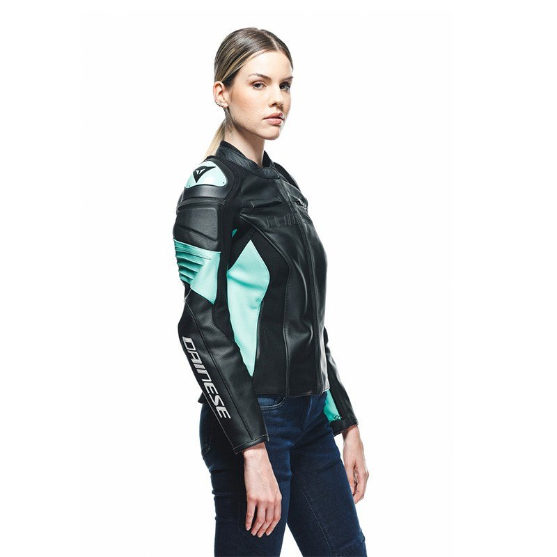 O novo blusão de motociclismo Racing 4 Lady em couro apresenta um novo visual, com uma gama de cores e um design e corte ligeiramente mais desportivos do que o modelo anterior. Como é habitual nos produtos topo de gama da Dainese, o blusão está equipado com protecções rígidas e articuladas para os cotovelos e ombros e com as emblemáticas protecções exteriores em alumínio para os ombros, para um visual mais desportivo do que nunca.