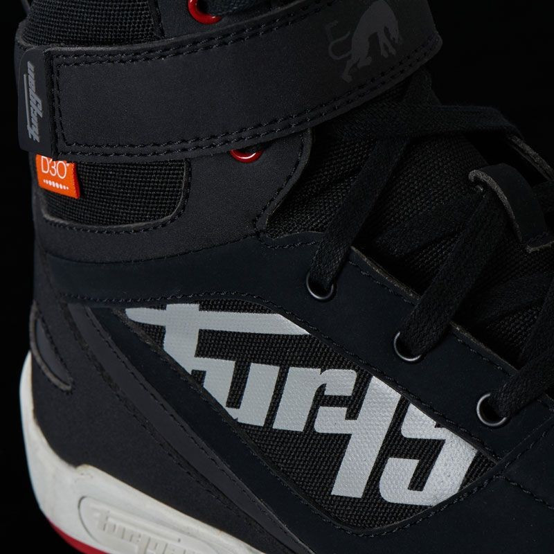 - Fecho com atacadores e aba de velcro para um ajuste perfeito à volta do tornozelo e para manter os atacadores no sítio.
