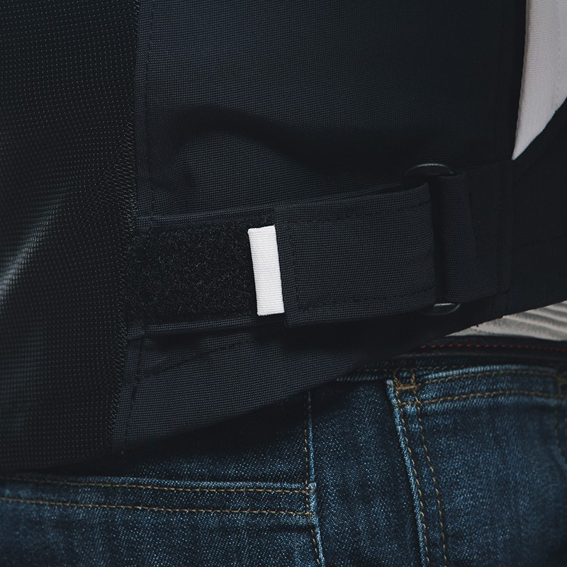 - A cintura e os punhos estão equipados com tiras ajustáveis com velcro para um ajuste seguro e rápido.