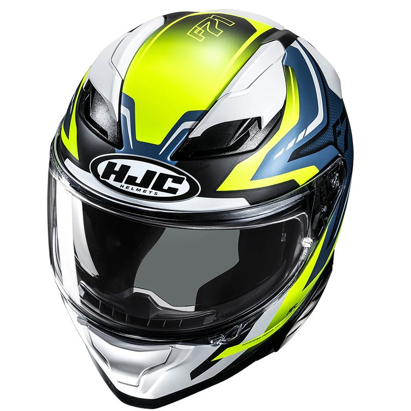 A marca de capacetes HJC tem o orgulho de apresentar o seu capacete de moto integral o F71 Fes de fibra de vidro desportivo/touring homlogado CE 22.06 com uma viseira solar interior.