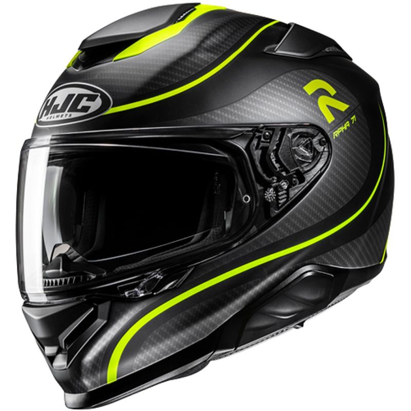 A marca de capacetes HJC tem o orgulho de apresentar o seu capacete de moto integral o RPHA 71 Cleta de fibra de vidro desportivo/touring homlogado CE 22.06 com uma viseira solar interior.