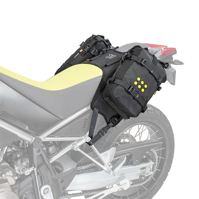 O OS-BASE é um «arnês sobre o assento» para montar os ADVENTURE PACKS OS-6, OS-12 ou OS-18 como alforges macios, sem necessidade de estruturas metálicas.
