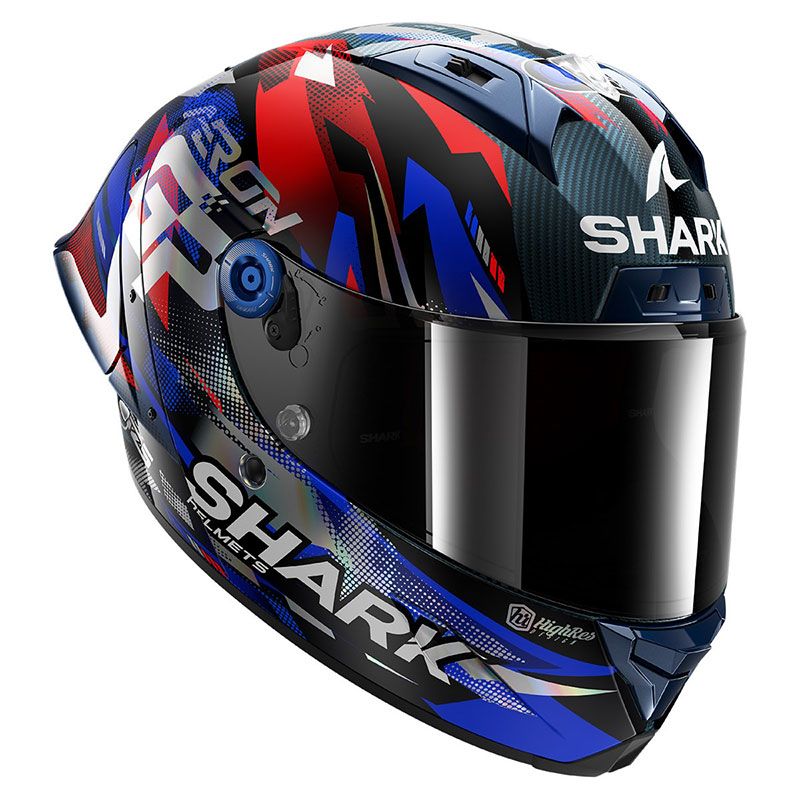 O fabricante francês Shark oferece-lhe o seu novo topo de gama capacete desenvolvido para circuito e proveniente do Moto GP e aprovado CE 22.06, o Aeron GP Replica Zarco GP de France.